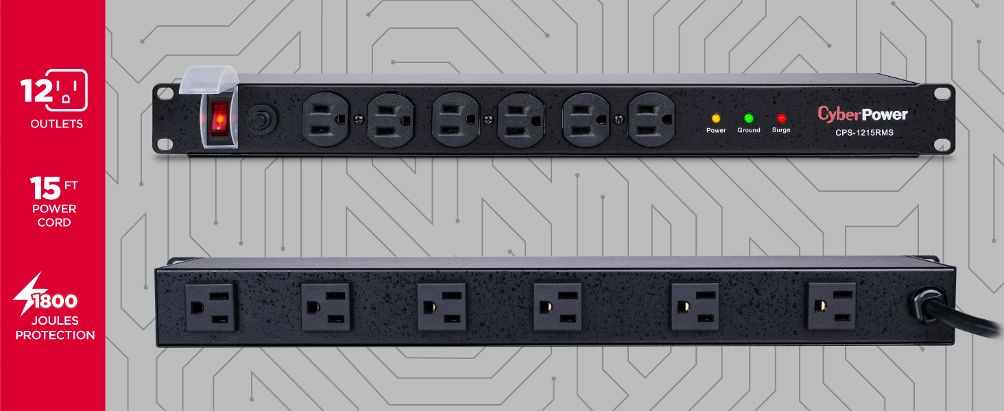 CyberPower CPS1215RMS Surge Protector, 120V/15A, 12 Outlets, 15 ft Power Cord, 1U Rackmount